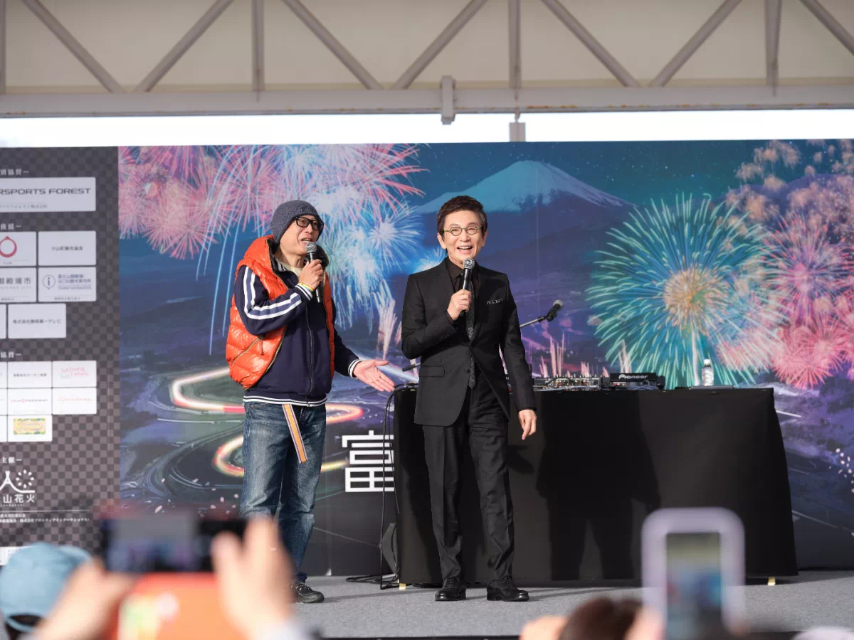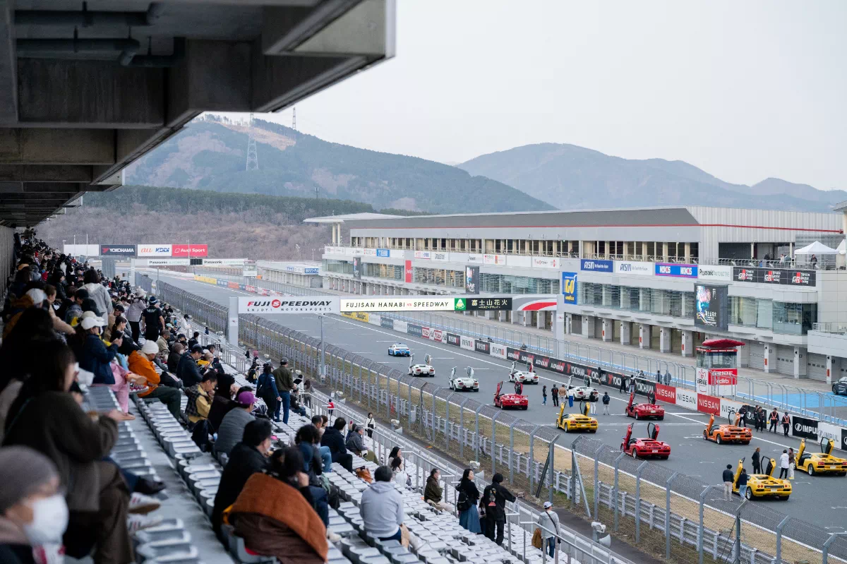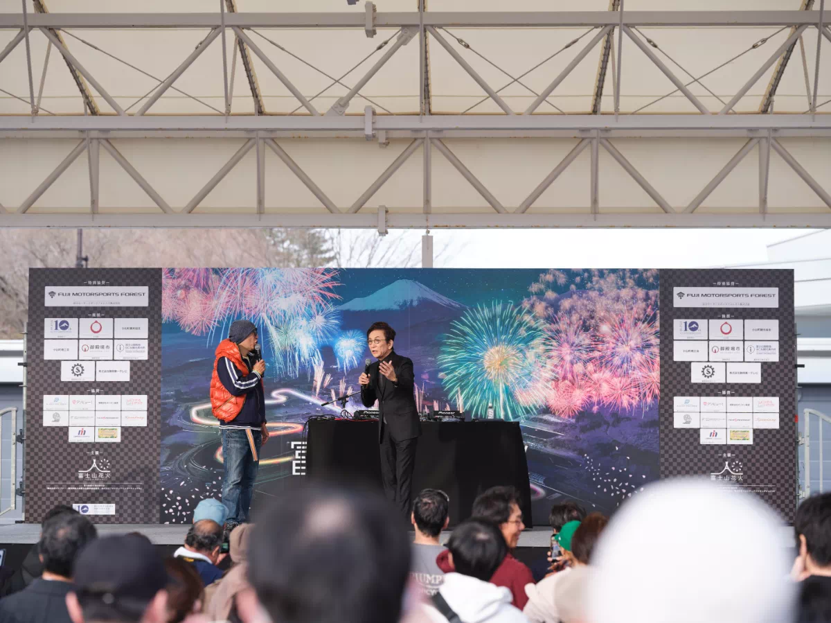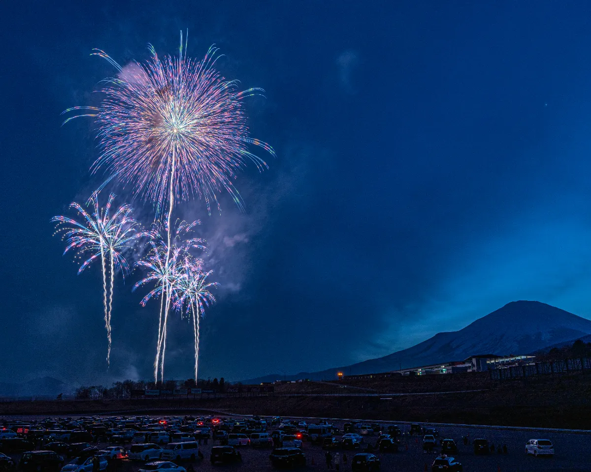 普段はレースが繰り広げられるこの場所で、花火大会の熱狂とクルマたちの存在感が交差する。