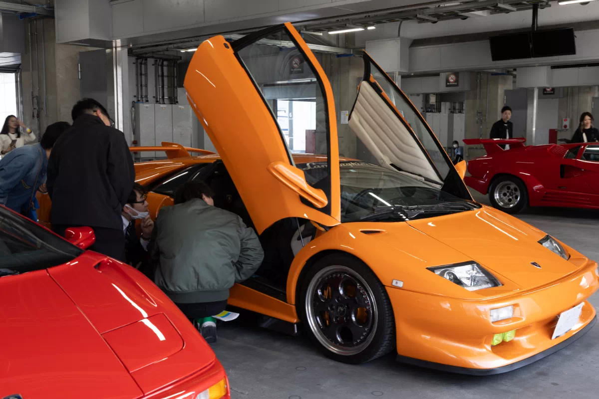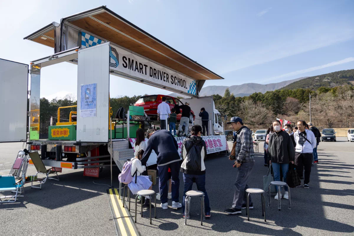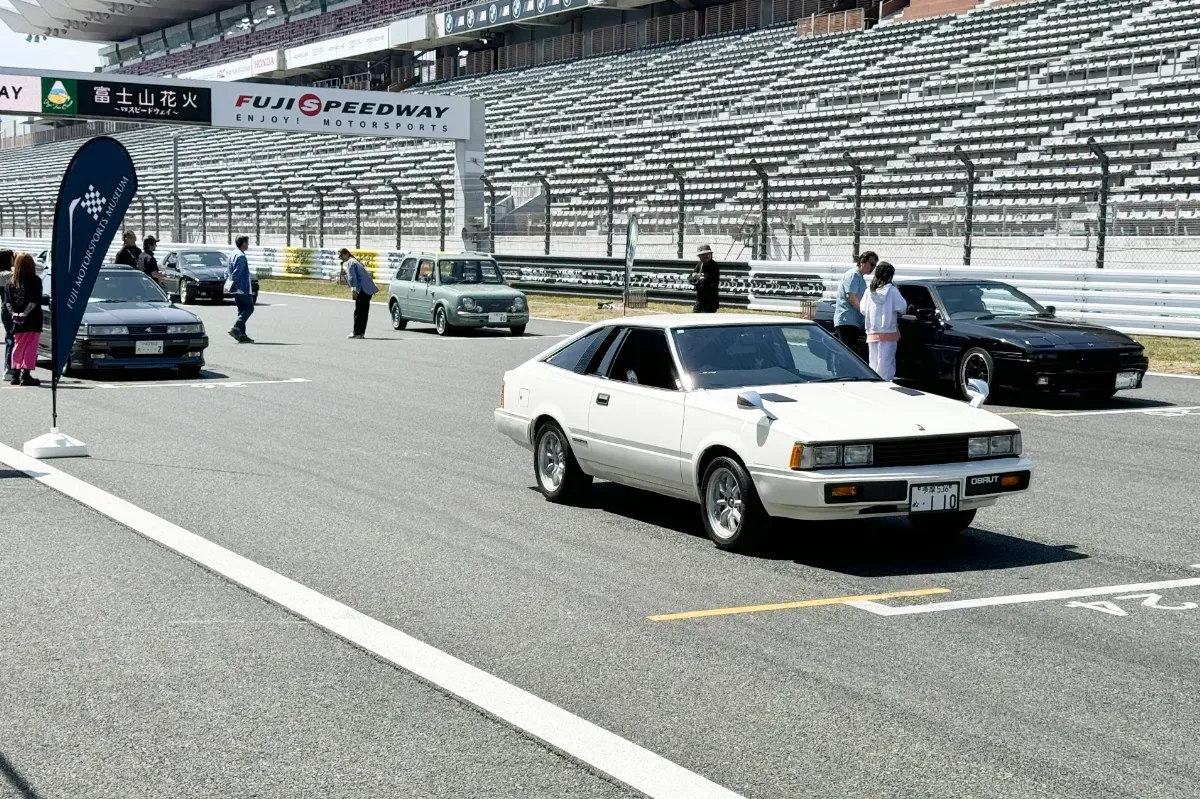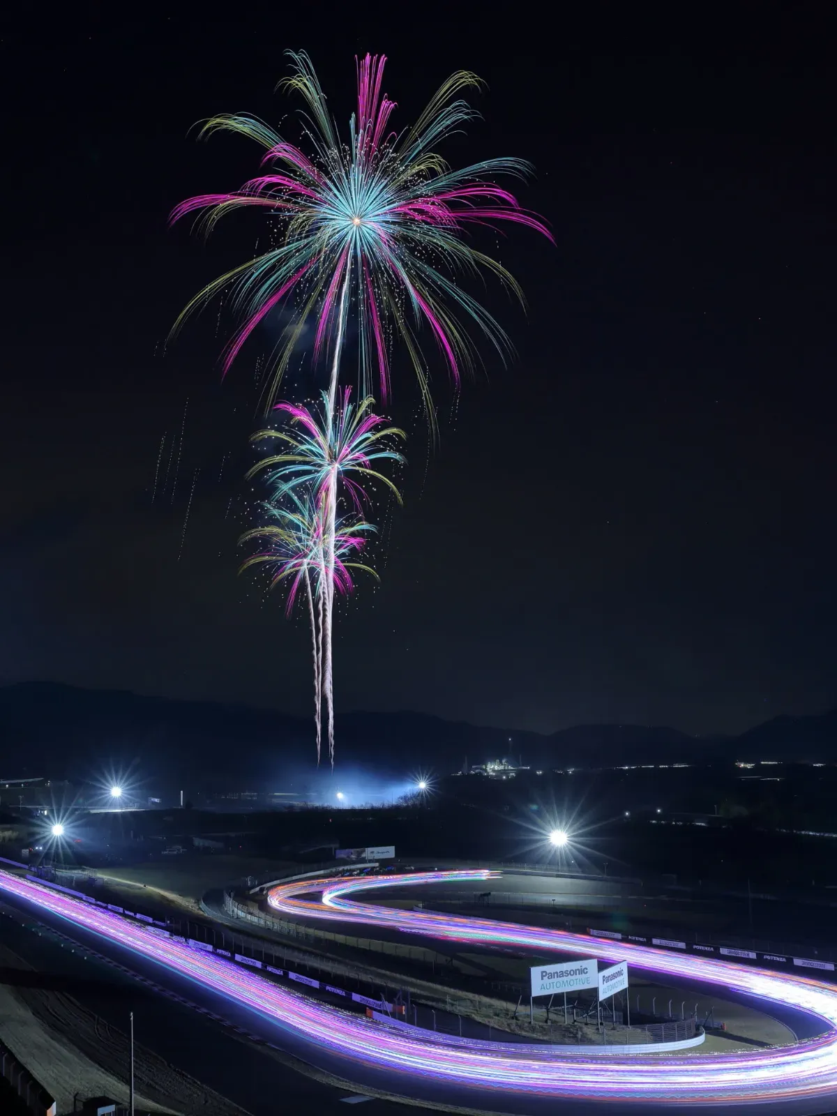 普段はレースが繰り広げられるこの場所で、花火大会の熱狂とクルマたちの存在感が交差する。