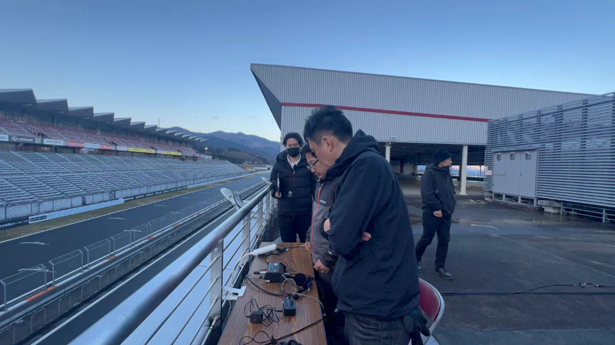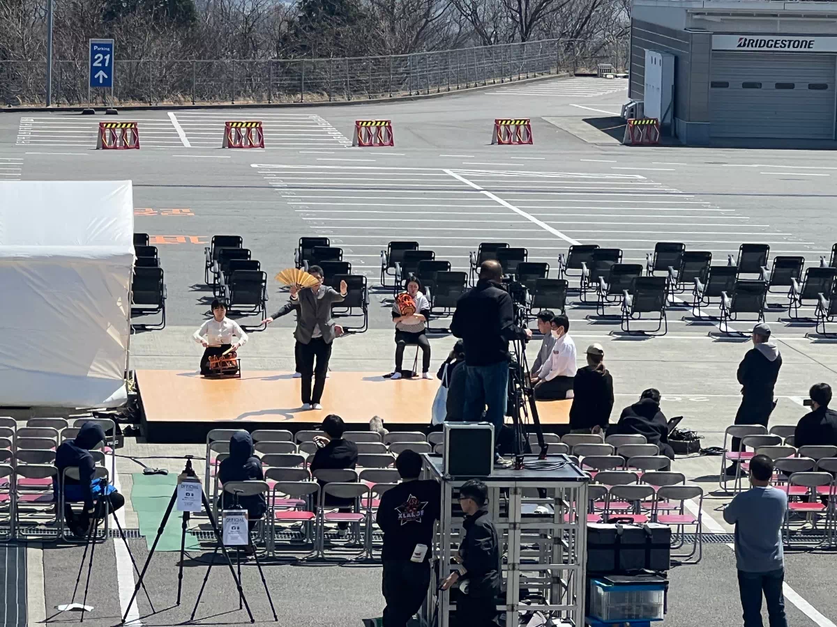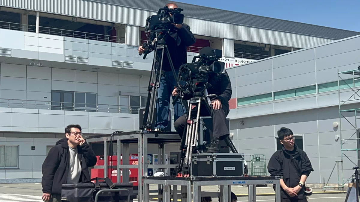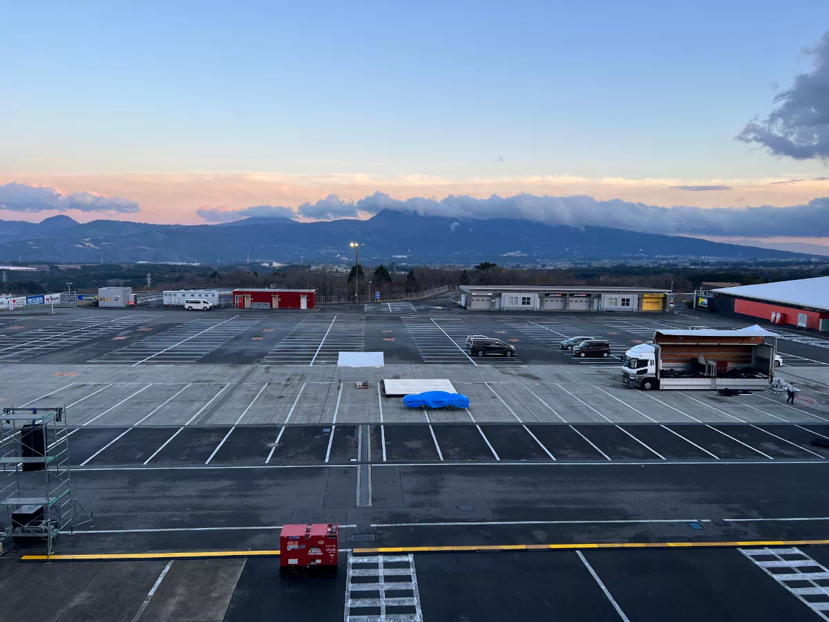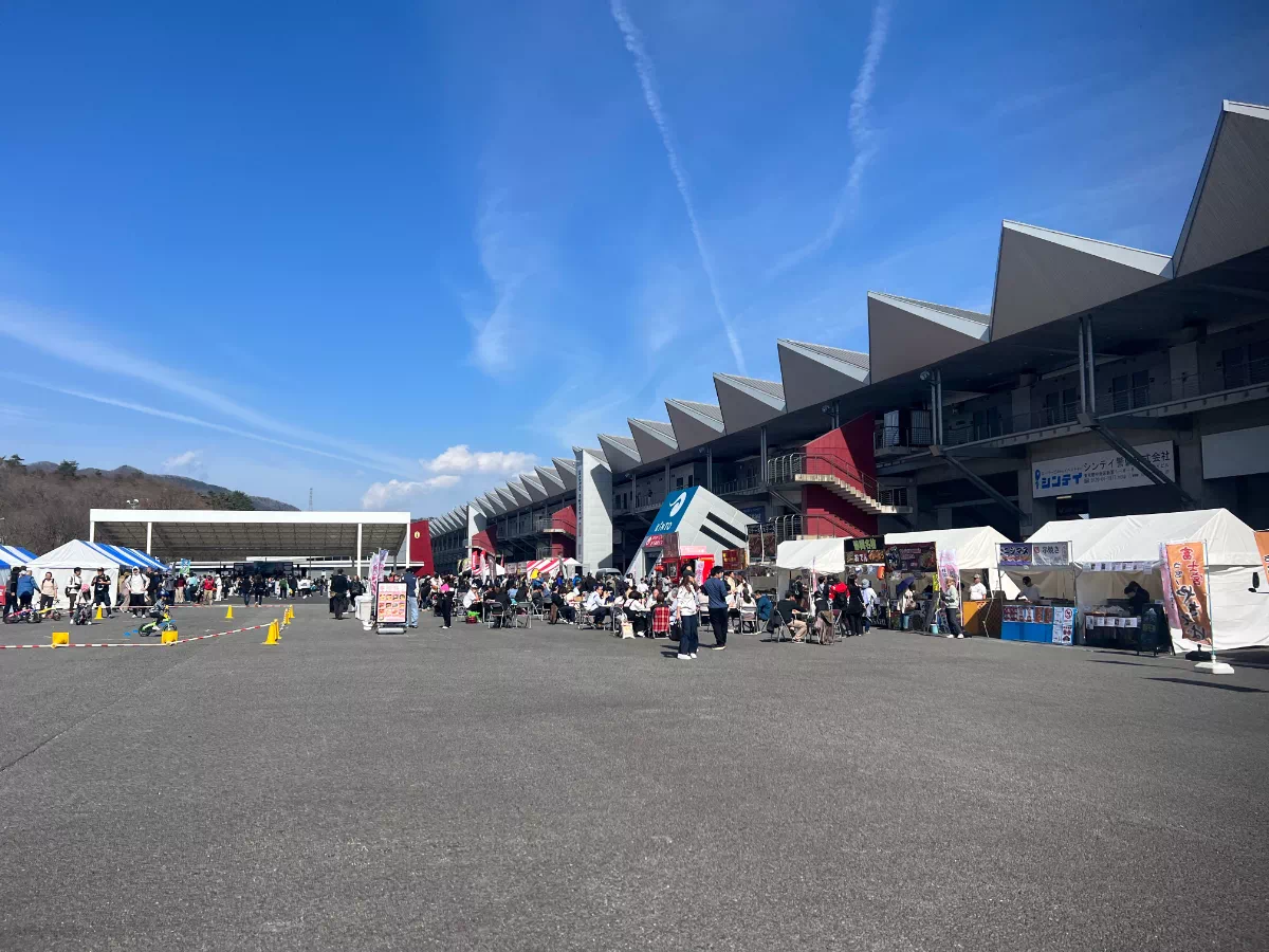 まだ誰もいないサーキットに、ステージが立ち、のぼりが揺れ、機材が積み上がる。