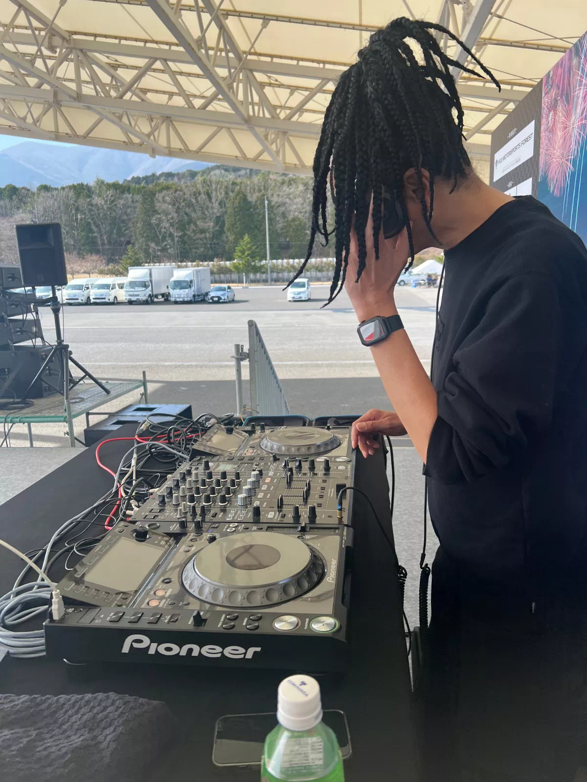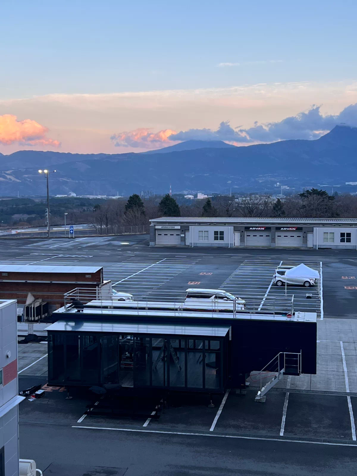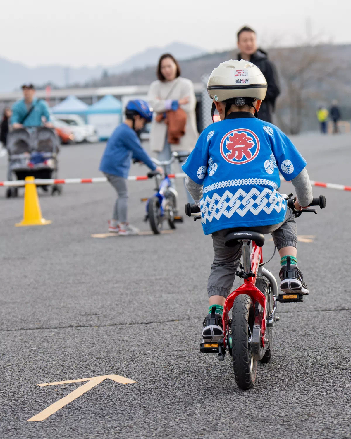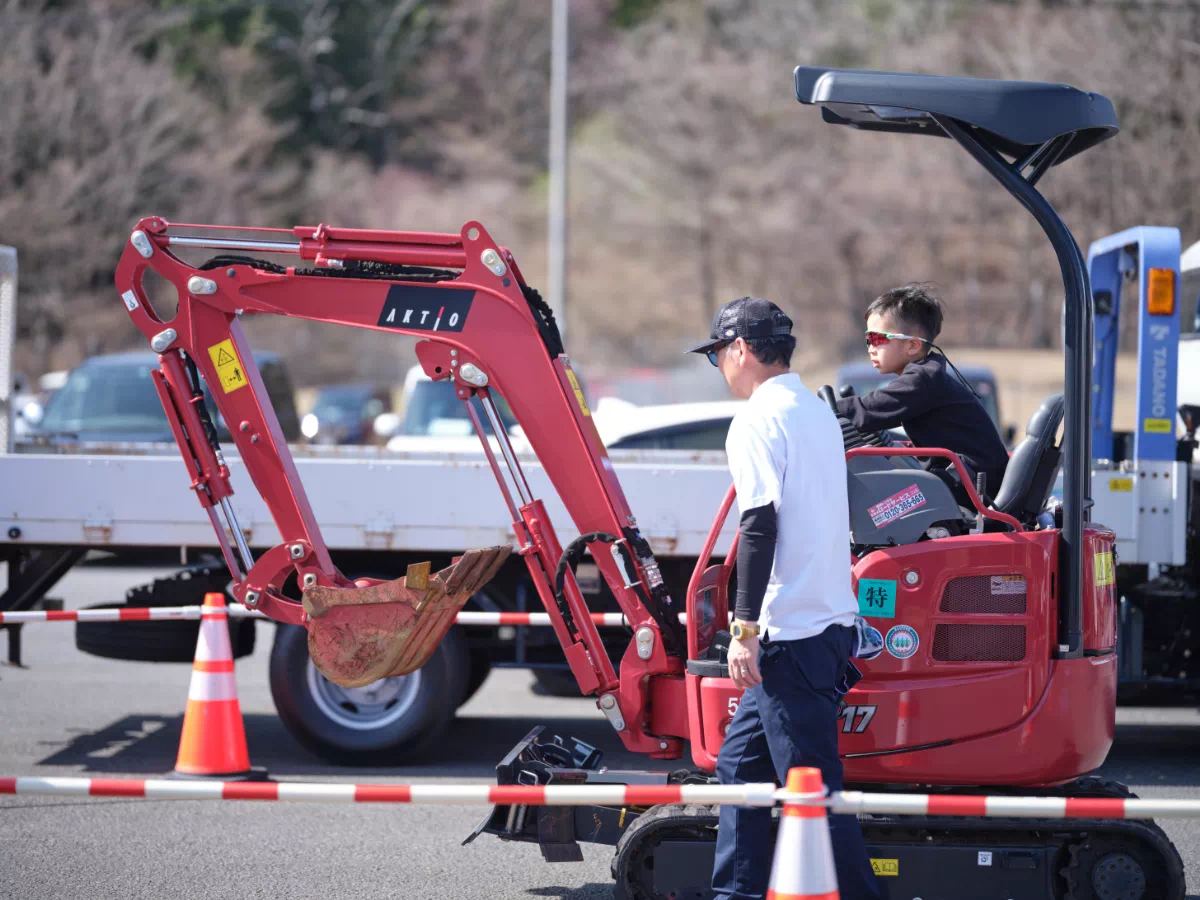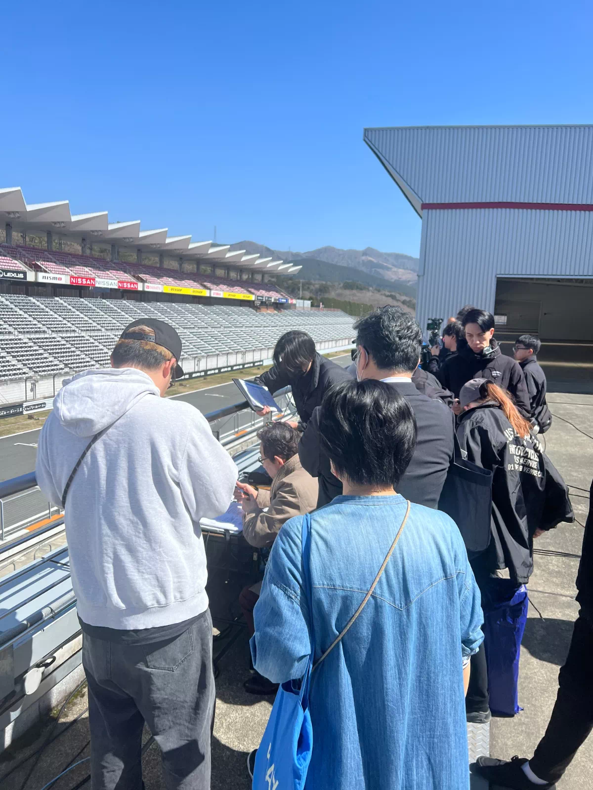 まだ誰もいないサーキットに、ステージが立ち、のぼりが揺れ、機材が積み上がる。
