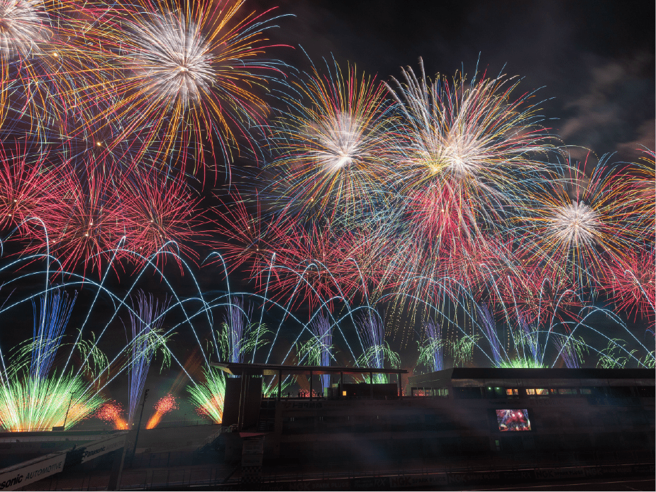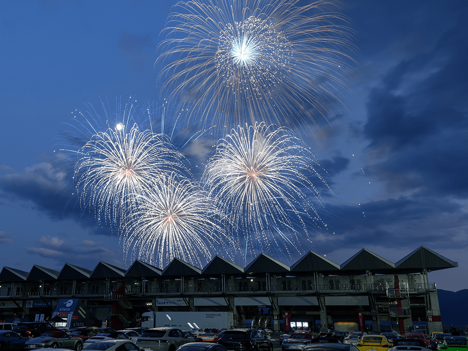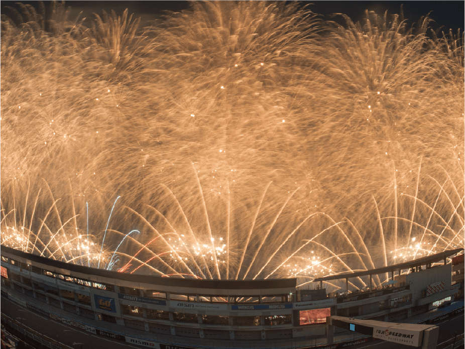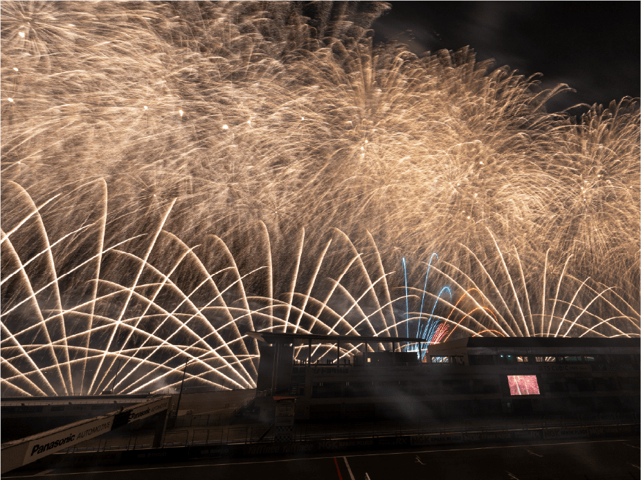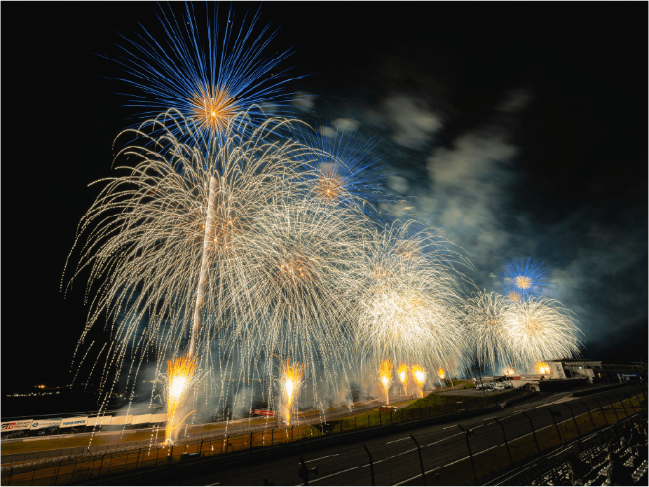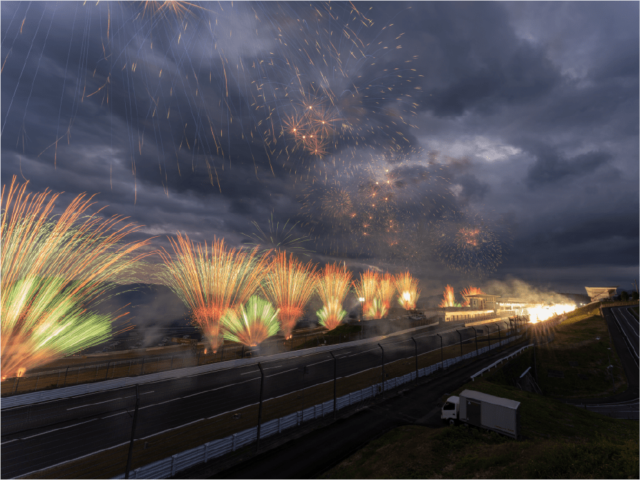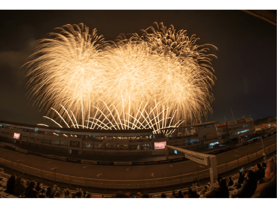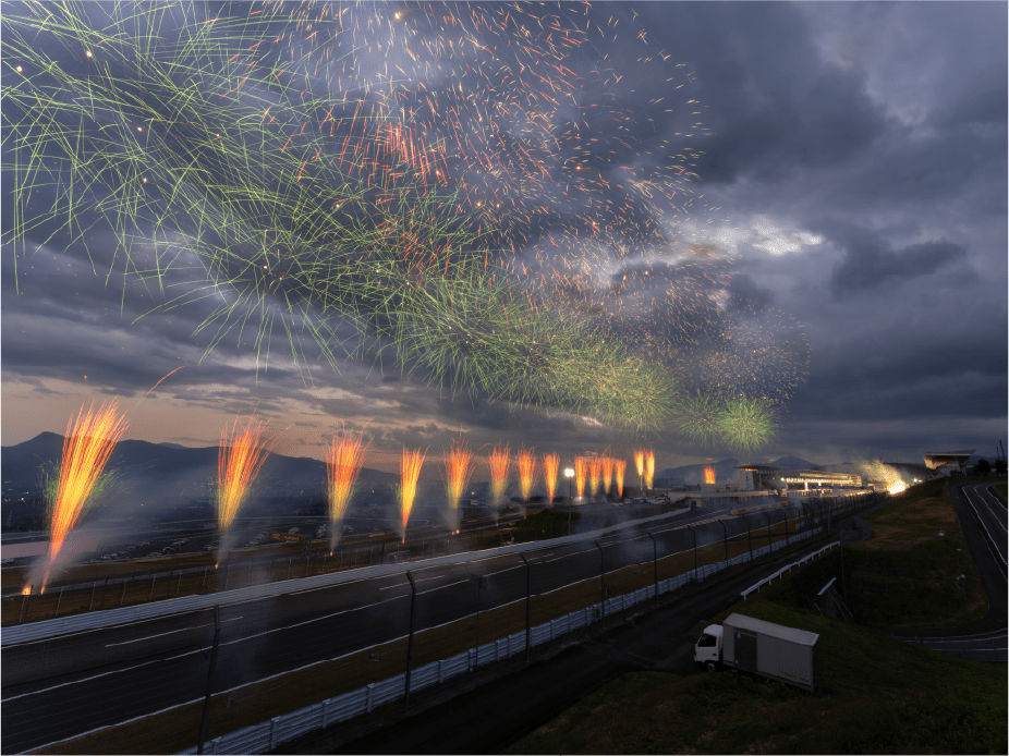 ・ホームストレート上の車と花火の共演は見ることは出来ないことをご了承ください。