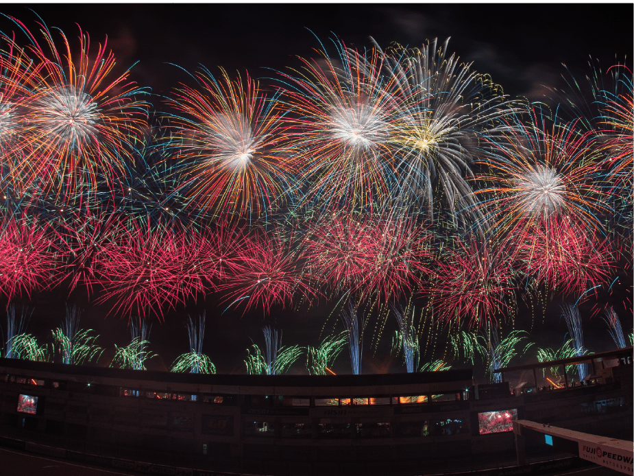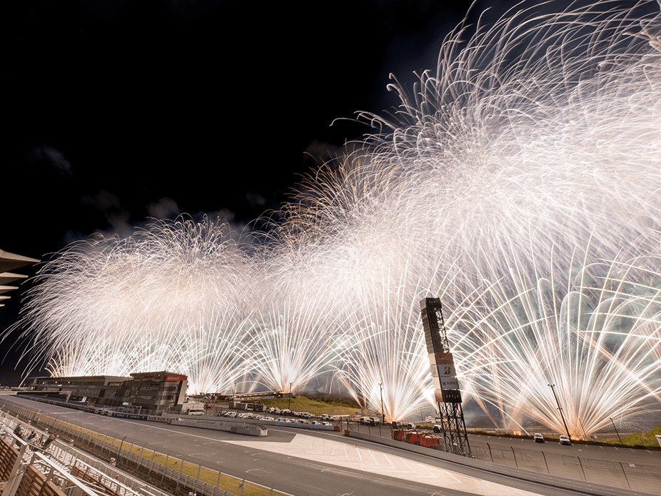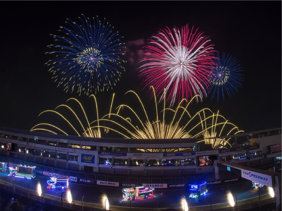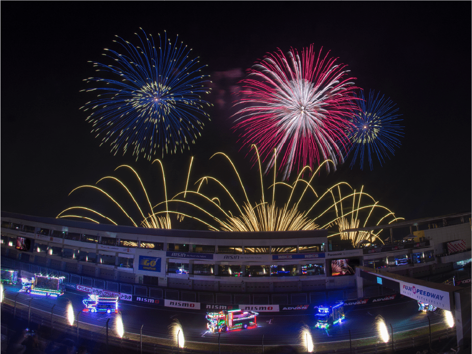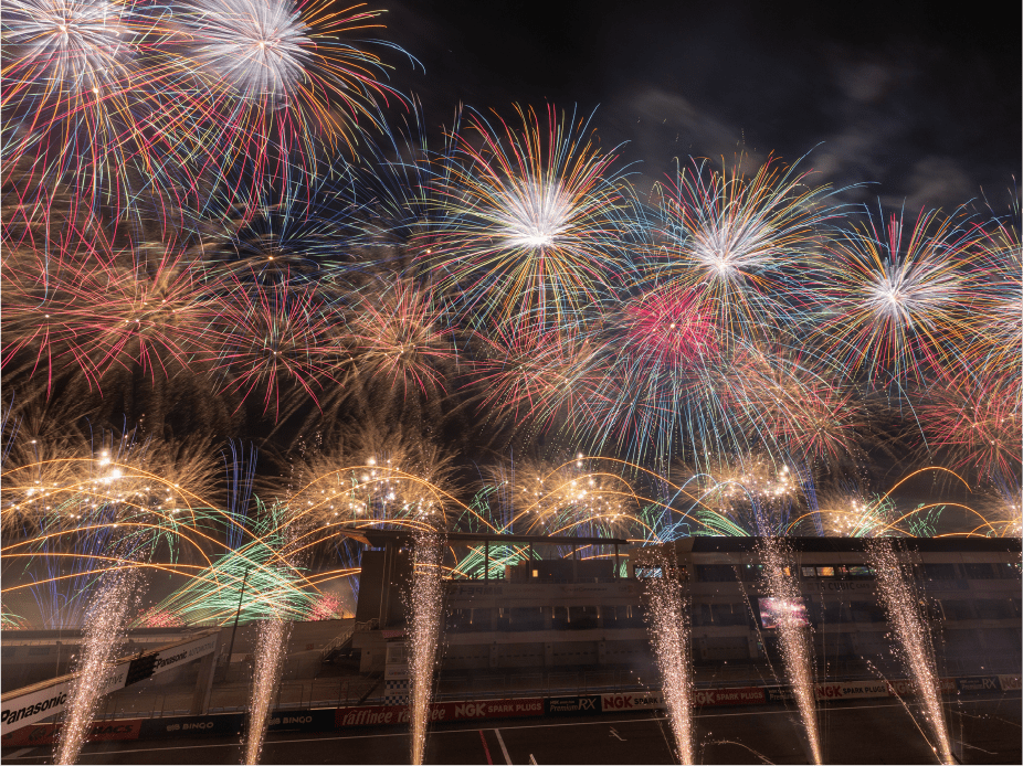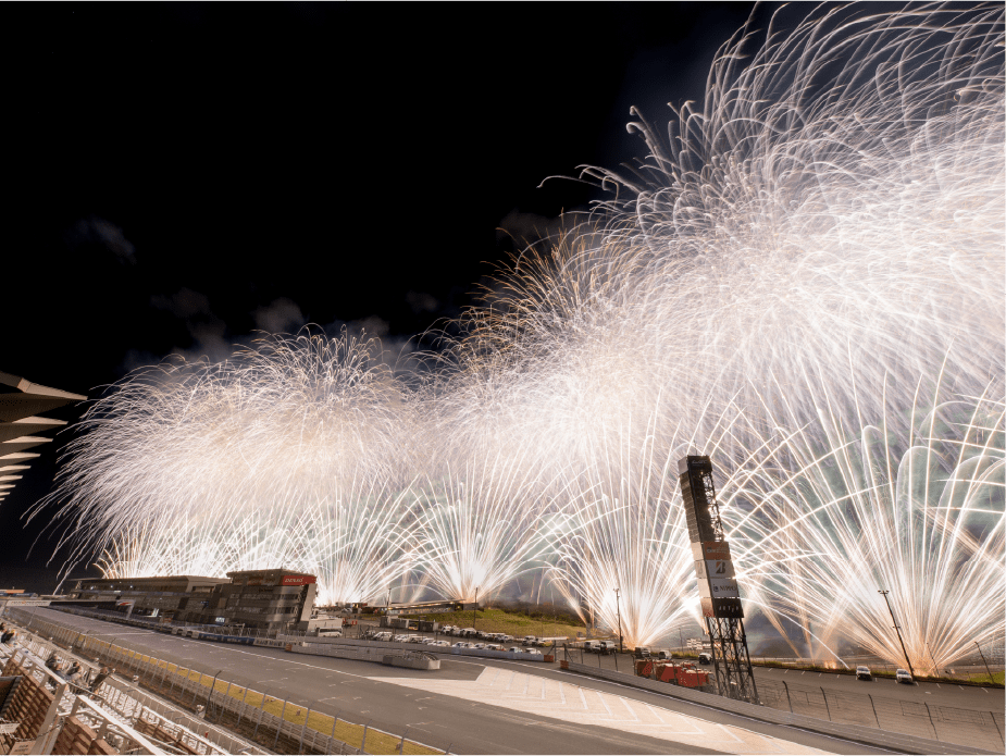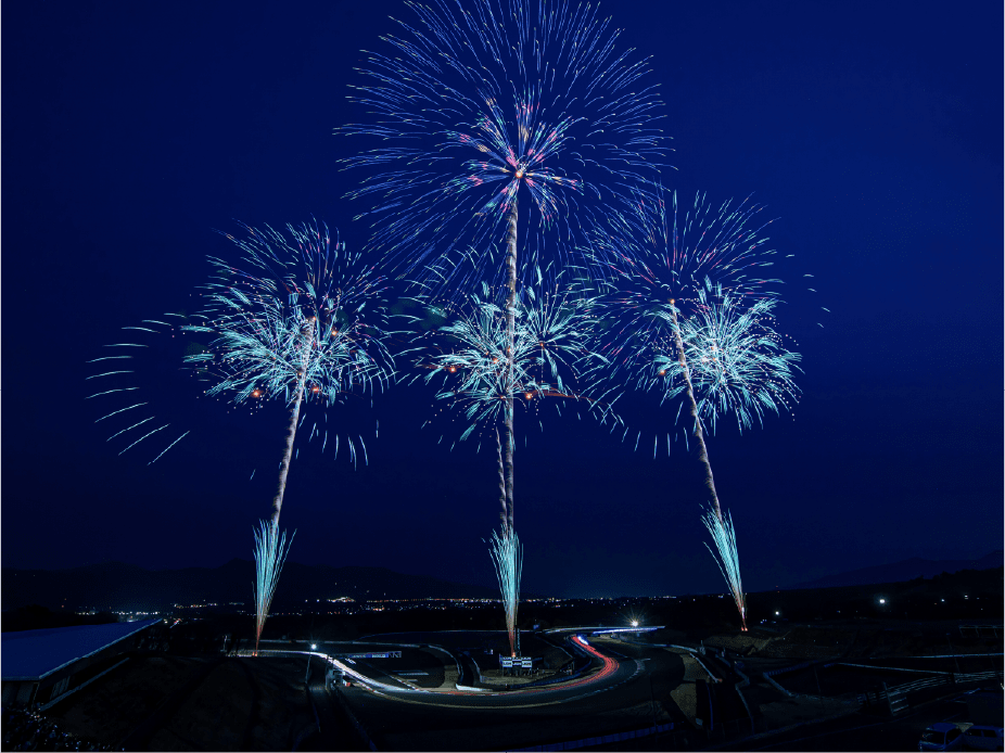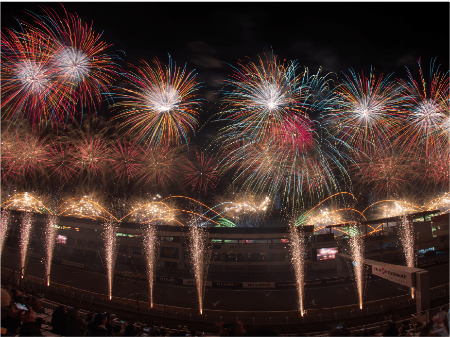 ・ホームストレート上の車と花火の共演は見ることは出来ないことをご了承ください。