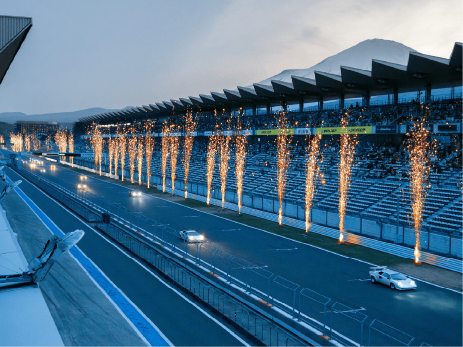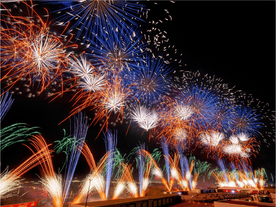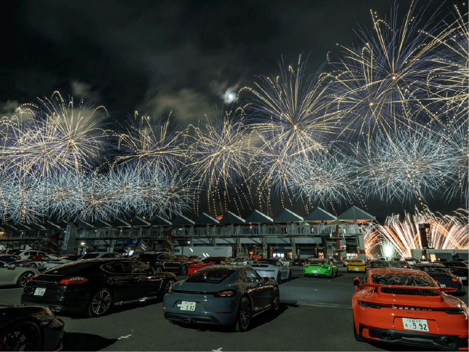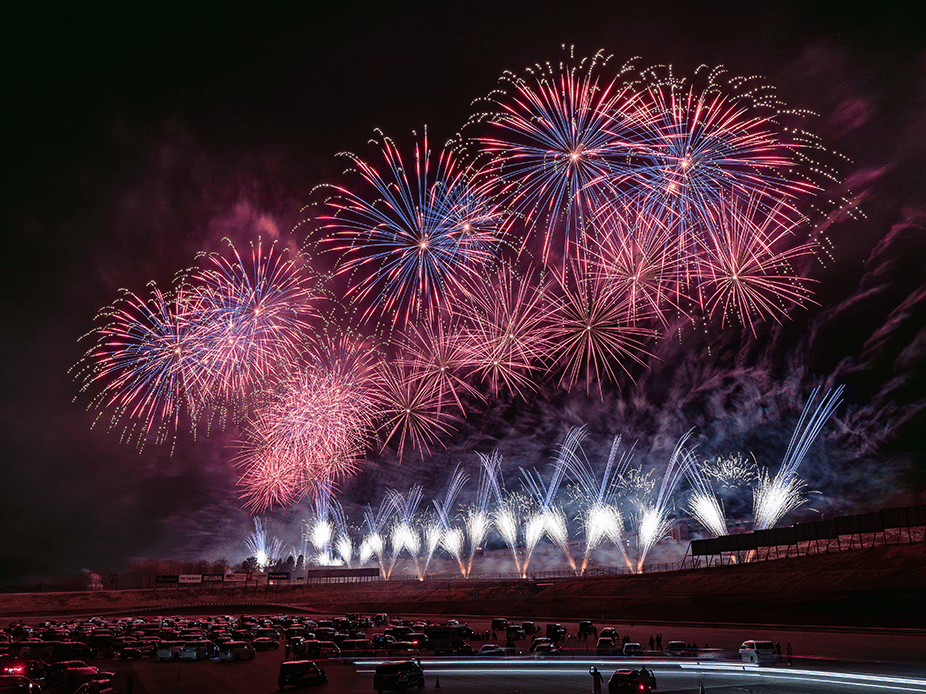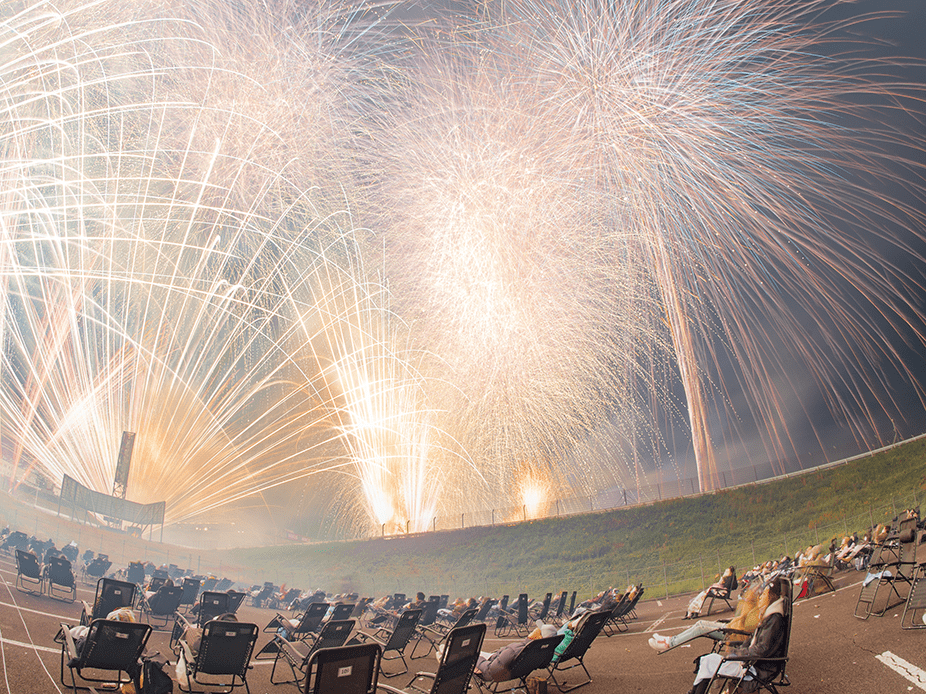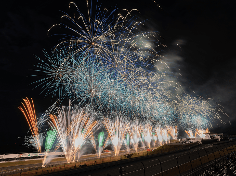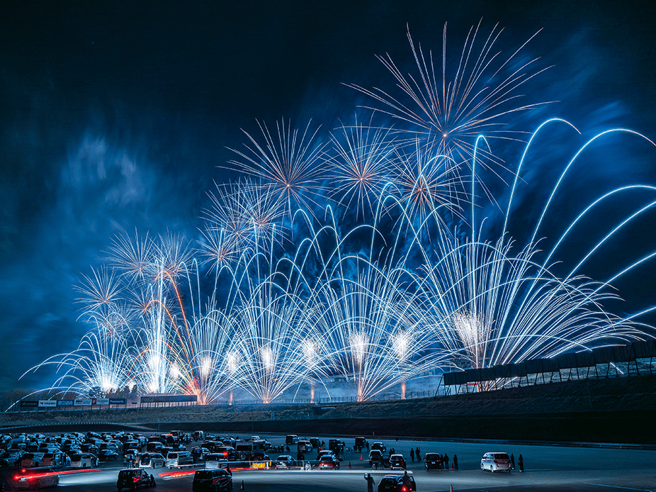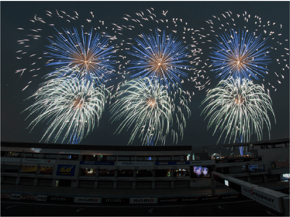 ・ホームストレート上の車と花火の共演は見ることは出来ないことをご了承ください。