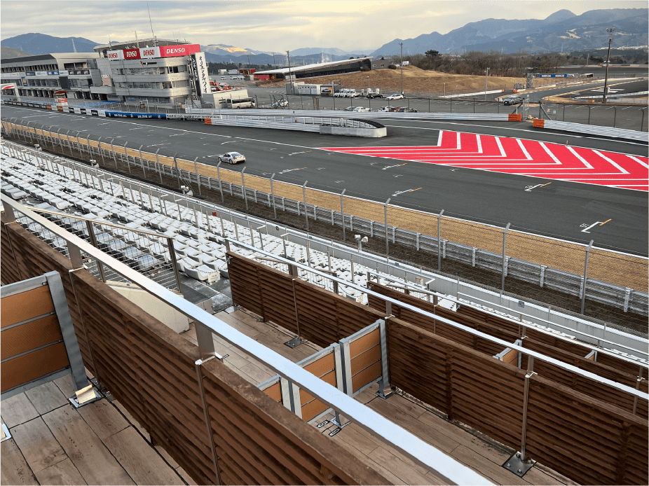 プライベイト空間でサーキットのホームストレートを一望!