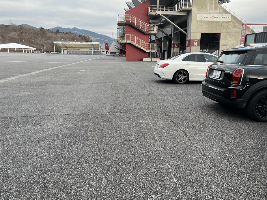 ・駐車場は第1コーナー駐車場を確約。カメラ機材を持ち歩く必要は一切ありません。(駐車場料金はゲートにてお支払いください)駐車場は154台分。実際は2200名収容可能なこの第1コーナースタンドですが、154名のみ入場可能といたします。