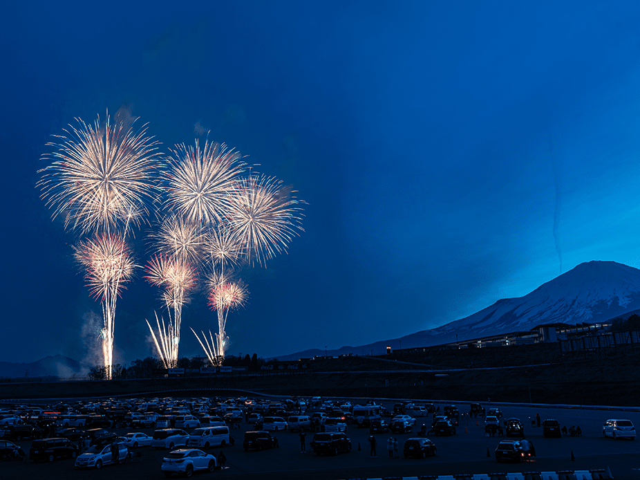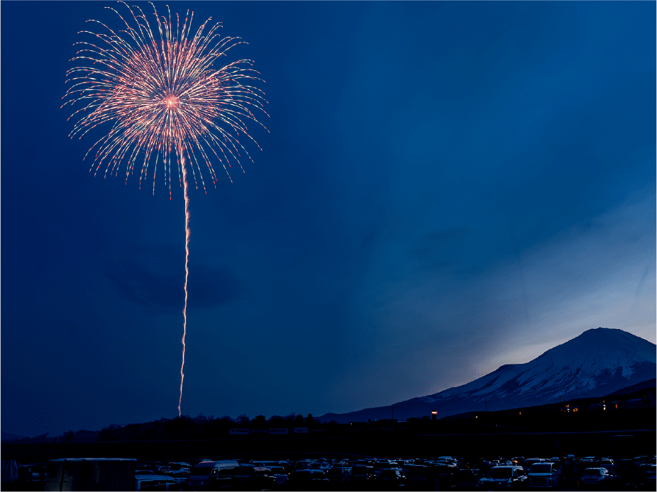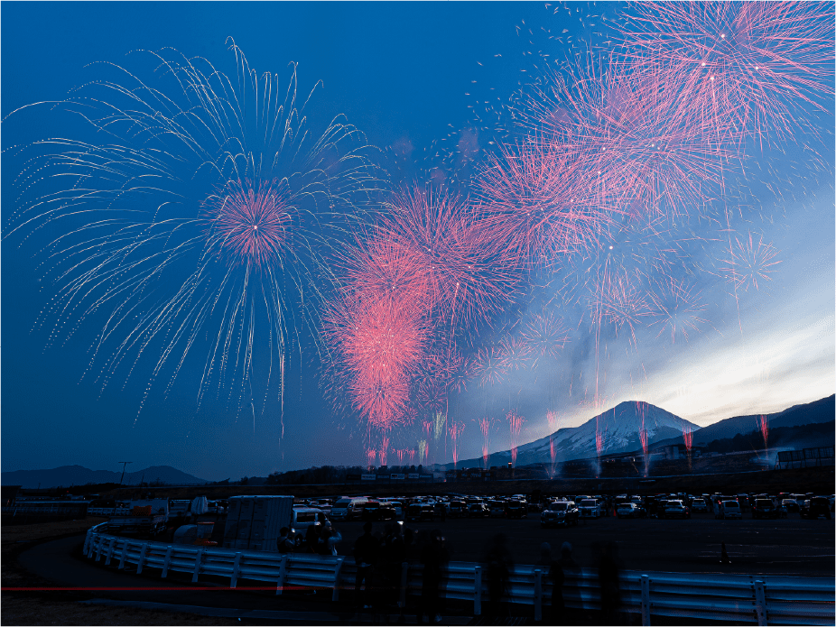 ・富士スピードウェイ全域に渡って打ち上がる花火の全体を遠景で撮影可能なエリアです。