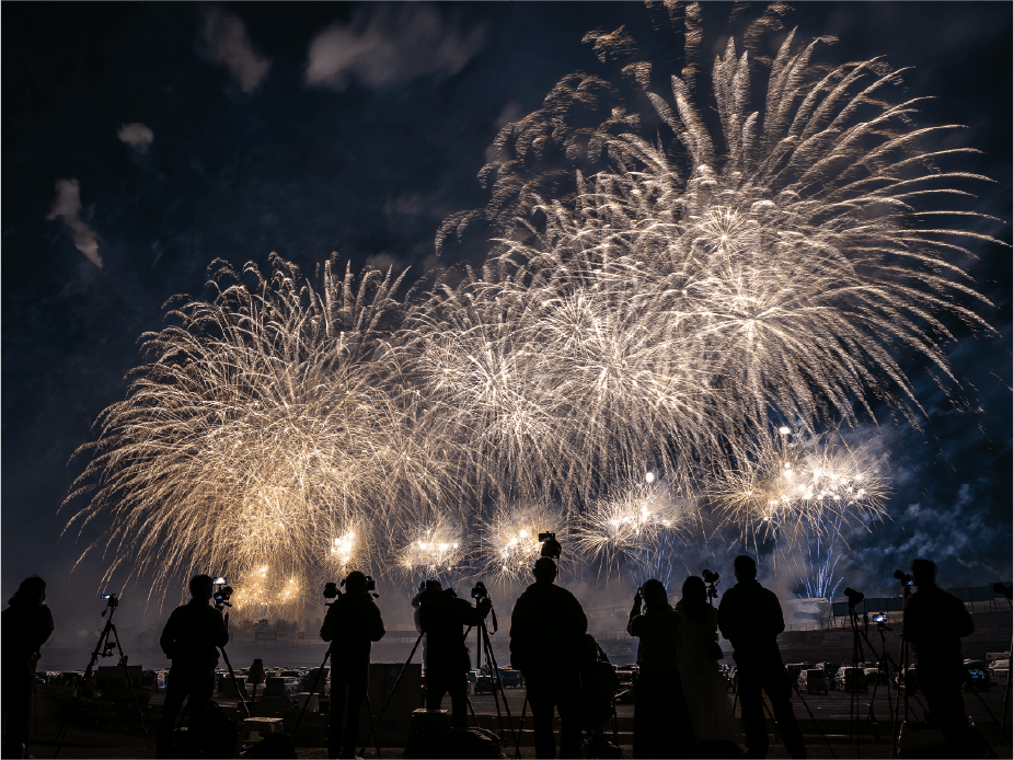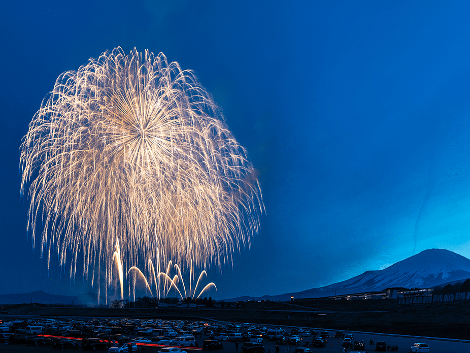 ・富士山をバックに打ち上がる花火全景を撮影可能です。(天候によっては富士山が見えない可能性があることをご了承ください)