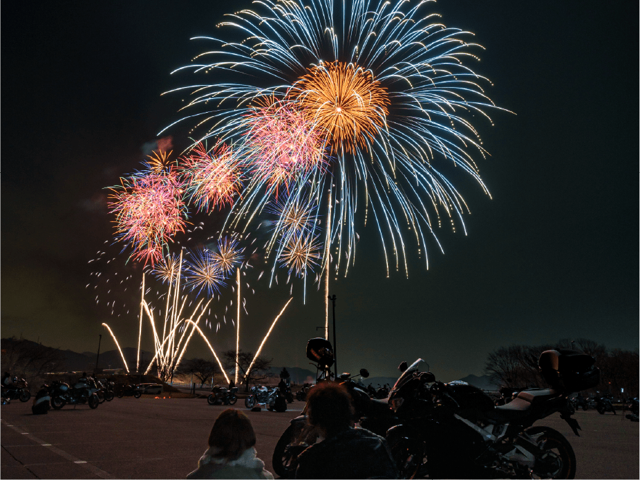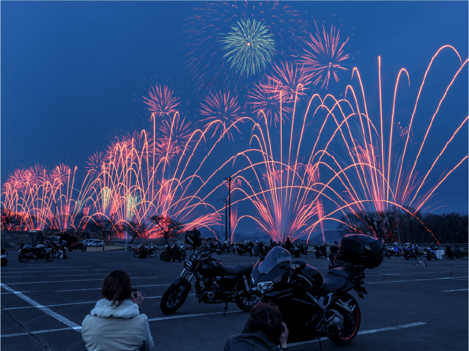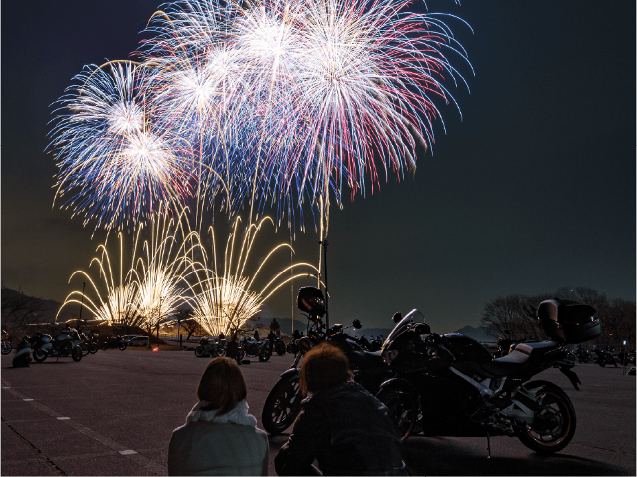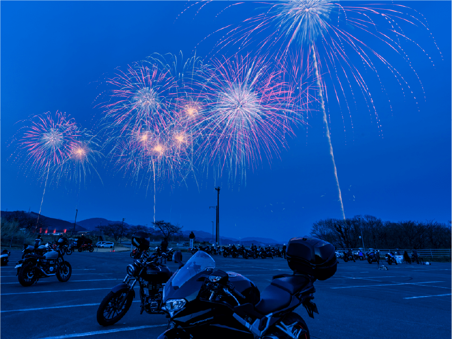 バイクで入場、バイクに跨って花火を鑑賞できる