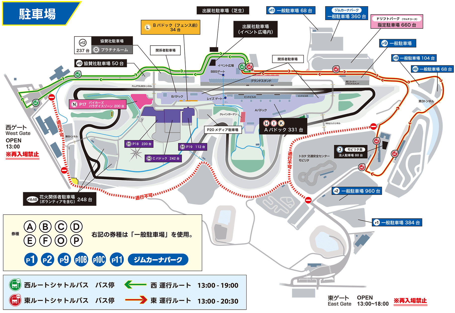 チケットの各席には割り振られた駐車場がございます。事前に駐車場マップをご確認ください。
